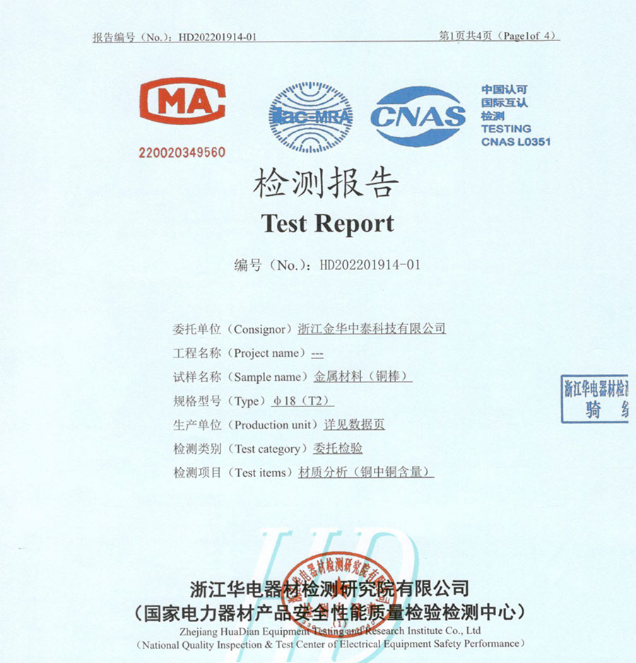 公司的銅棒頭產品通過相關檢測要求